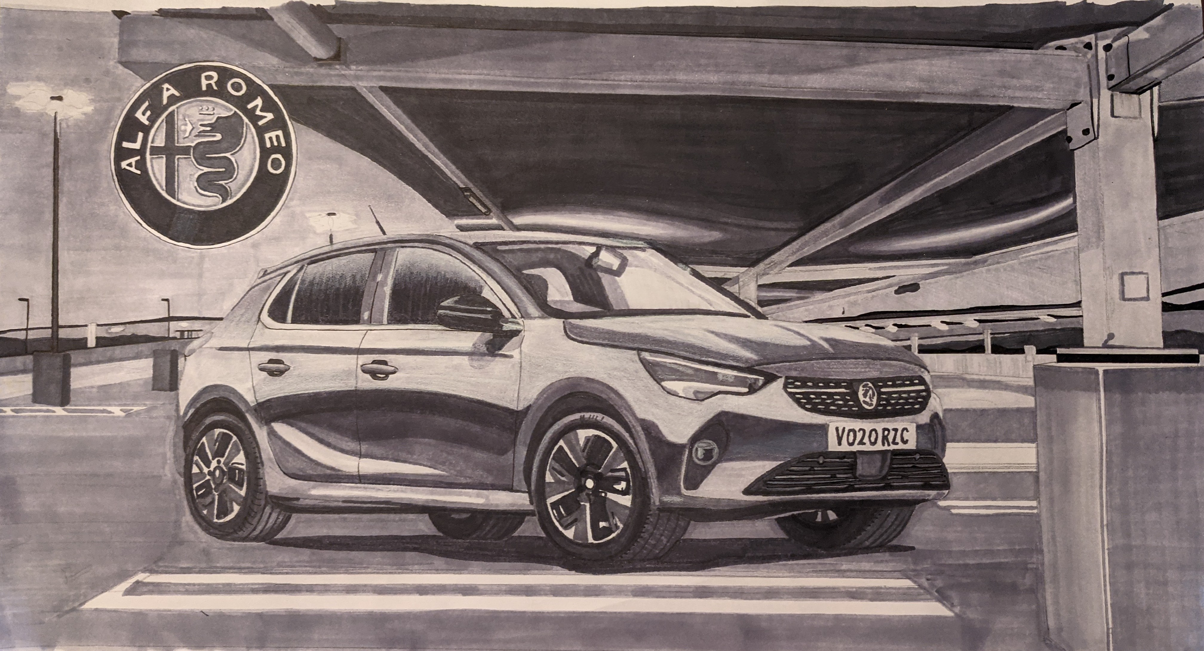 Grayscale Marker Car